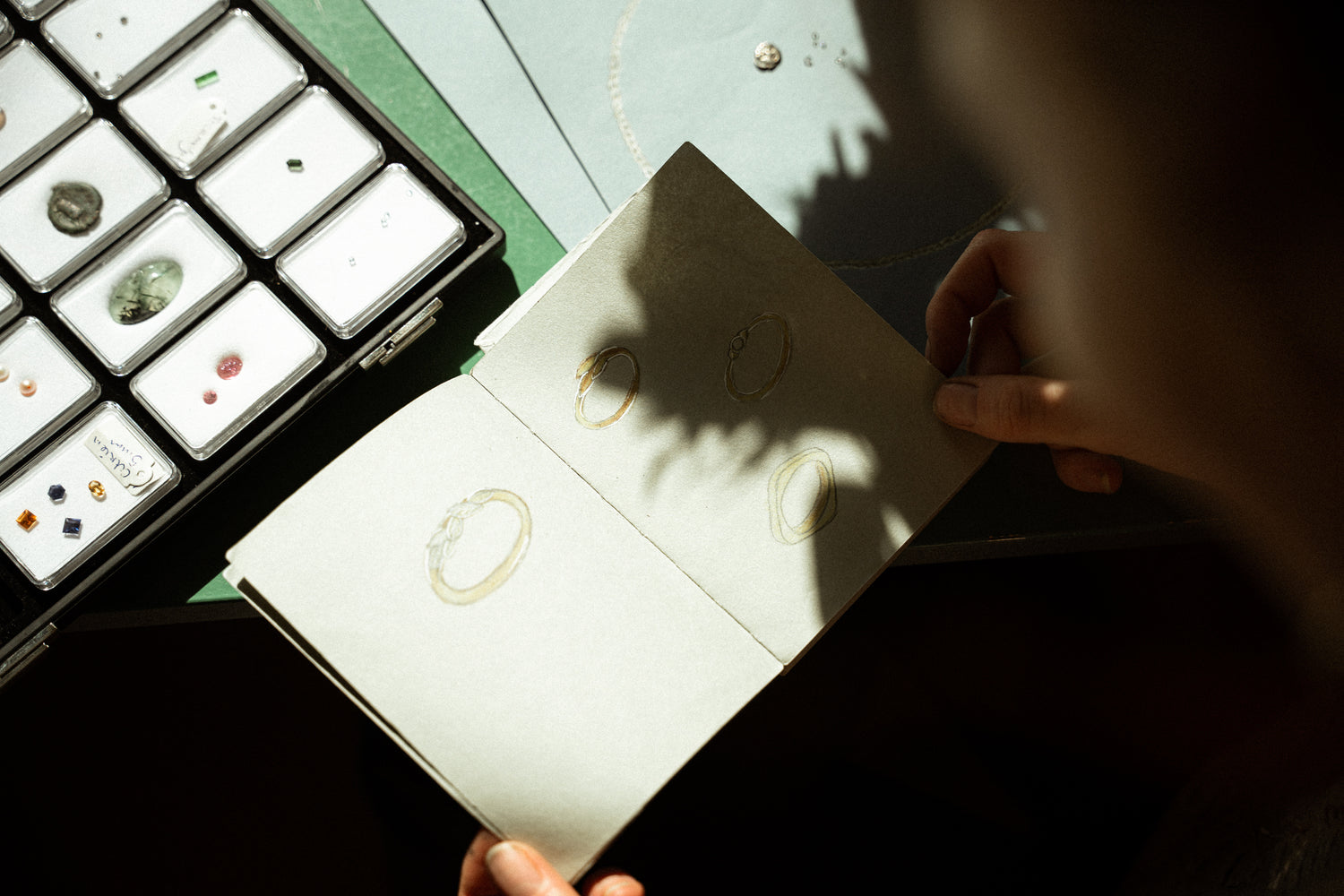 Je bent van harte welkom in mijn atelier aan huis in Keijenborg. Wij wonen bescheiden en ook het atelier is klein, maar gezellig. Bij mij aan de keukentafel kunnen we samen werken aan een mooi ontwerp of uitgebreid sieraden passen.