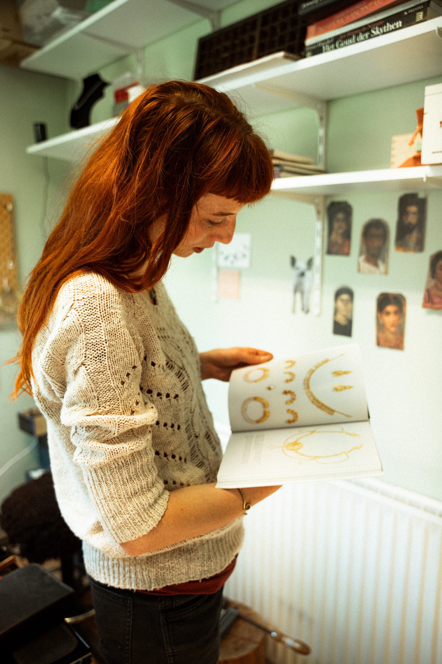 Al ver voor mijn opleiding tot goudsmid in Schoonhoven raakte ik betoverd door vele gevonden schatten uit verloren tijden, die weer bij elkaar zijn gebracht in musea en andere verzamelingen. Ik begon met het bestuderen van kleine objecten, zoals potten, sieraden, kralen, flesjes, amuletten en beeldjes. Erachter komen welke beschaving, cultuur, mens, en gebruik achter deze objecten schuilt, prikkelde mij. Ik kon deze objecten niet zomaar los laten. Het leren van het ambacht goudsmeden was voor mij dé manier om mijn verbondenheid met deze oude objecten en motieven tot leven te brengen.